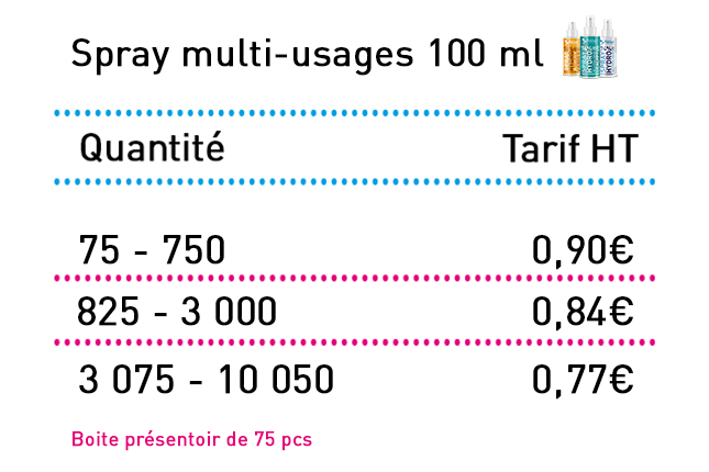 100ml Spray Multi-surfaces Neutre/Eucalyptus/Vanille - Présentoir de 75pcs